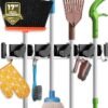 Holikme Mop Broom Holder Wall Mount Metal Pantry Organization and Storage Garden Kitchen Tool Organizer Wall Hanger for Home Goods (4 Positions with 4 Hooks, Black)